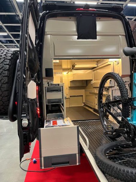 Pakunrakentajina meitä kiinnostivat eniten tietysti itserakennetut ja kustomoidut autot. Näillä messuilla oli ainakin kolme pakettiautoista retkeilyautoja rakentavaa yritystä näytteilleasettajana, ja heillä kaikilla oli hyvin erilaisia autoja näytillä, mikä oli siis vain positiivinen asia. Oli mielenkiintoista nähdä, miten ihan tavalliseen pakettiautoon voi saada erilaisia toimivia, kekseliäitä ja kivannäköisiä ratkaisuja, eikä budjetin tarvitse välttämättä olla pilviähipova. Tätä osastoa edusti Vanlife-talli.