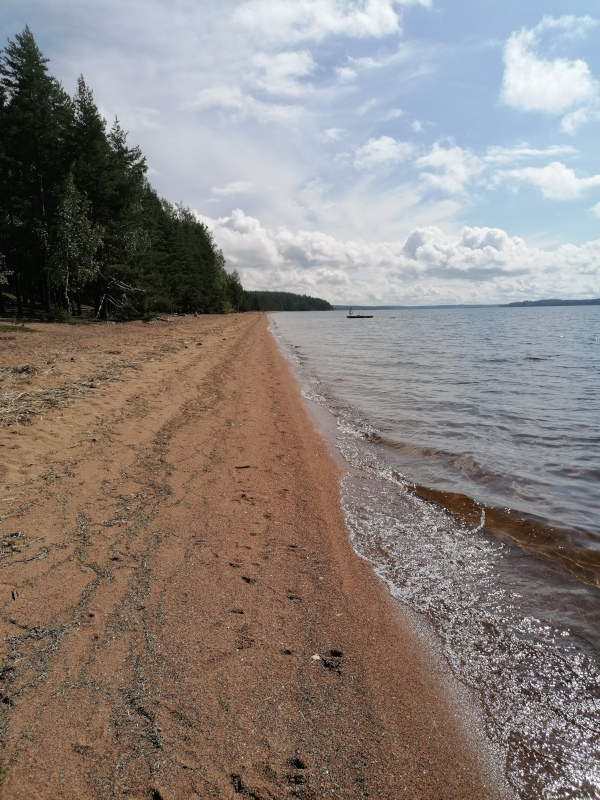Reippailun jälkeen päivä alkoi kääntyä jo kohti iltaa ja meidän automme nokka osoitti kohti Ruokolahtea. Yöpaikaksi olimme jo etukäteen valinneet Huuhanrannan. Sinne pääsee ilmeisesti ainakin kahta eri hiekkatietä, joista me taisimme valita sen huonokuntoisemman (ainakin kesän 2023 tilanteen mukaisesti). Onneksi ei tarvinnut ihan rannalle asti ajaa, vaan auton sai mukavasti yöksi parkkiin hiukan ylempänä olevalle parkkipaikalle. Huuhanrannallakaan ei ollut ruuhkaa. Lähtöpäivän aamuna kävimme kävelemässä pitkin rantaviivaa pitkät pätkät näkemättä ketään muuta. Harvinaista ja luksusta.