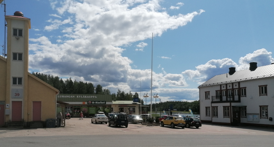 Pyydysniemen parkkipaikalta suuntasimme seuraavana päivänä kohti pohjoista. Matkan ensimmäinen pysäkki oli heti Luhangalla, joka on manner-Suomen toiseksi pienin kunta. Sen keskusta mahtuu melkeinpä kokonaan yhteen valokuvaan, eli mukavan kompakti paikka. Minulla on varsinkin tällaisissa pienissä kunnissa tapana käydä lukemassa kunnanviraston ilmoitustaulua ja kunnan toimielinten esityslistoja. Joku kieroutunut tapa sekin.