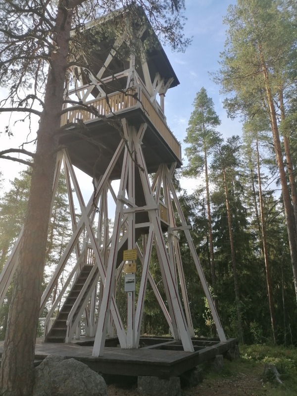 Sysmään saavuimme alkuillasta, jossa ajoimme suoraan Päijätsalon retkeilualueelle. Sysmässä on toki leirintäaluekin, mutta puskaparkki kutsui meitä enemmän. Päijätsalon Pyydysniemessä on paljon polkuja tallattavaksi ja löytyipä sieltä näkötornikin, josta käsin kävimme jälleen ihailemassa järvimaisemia. Pyydysniemestä ja näkötornista löytyy lisätietoa Sysmän kunnan verkkosivuilta.