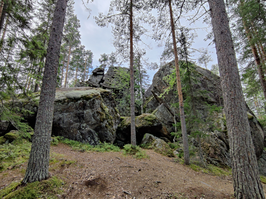 Matkalla pysähdyimme Puumalan alueella Saimaa Geoparkkiin kuuluvilla “Rakokivillä” (linkki koordinaatteihin). Lähinnä tarkoitus oli etsiä geokätköjä, mutta paikassa olevat siirtolohkareet olivat todella massiivisia ja vaikuttavia jo sinälläänkin. Voisin kuvitella, että varsinkin leikki- ja alakouluikäisten lasten kanssa tämä olisi todella kiva retkipaikka, mutta näköjään aikuiset ihmisetkin viihtyvät mainiosti.
